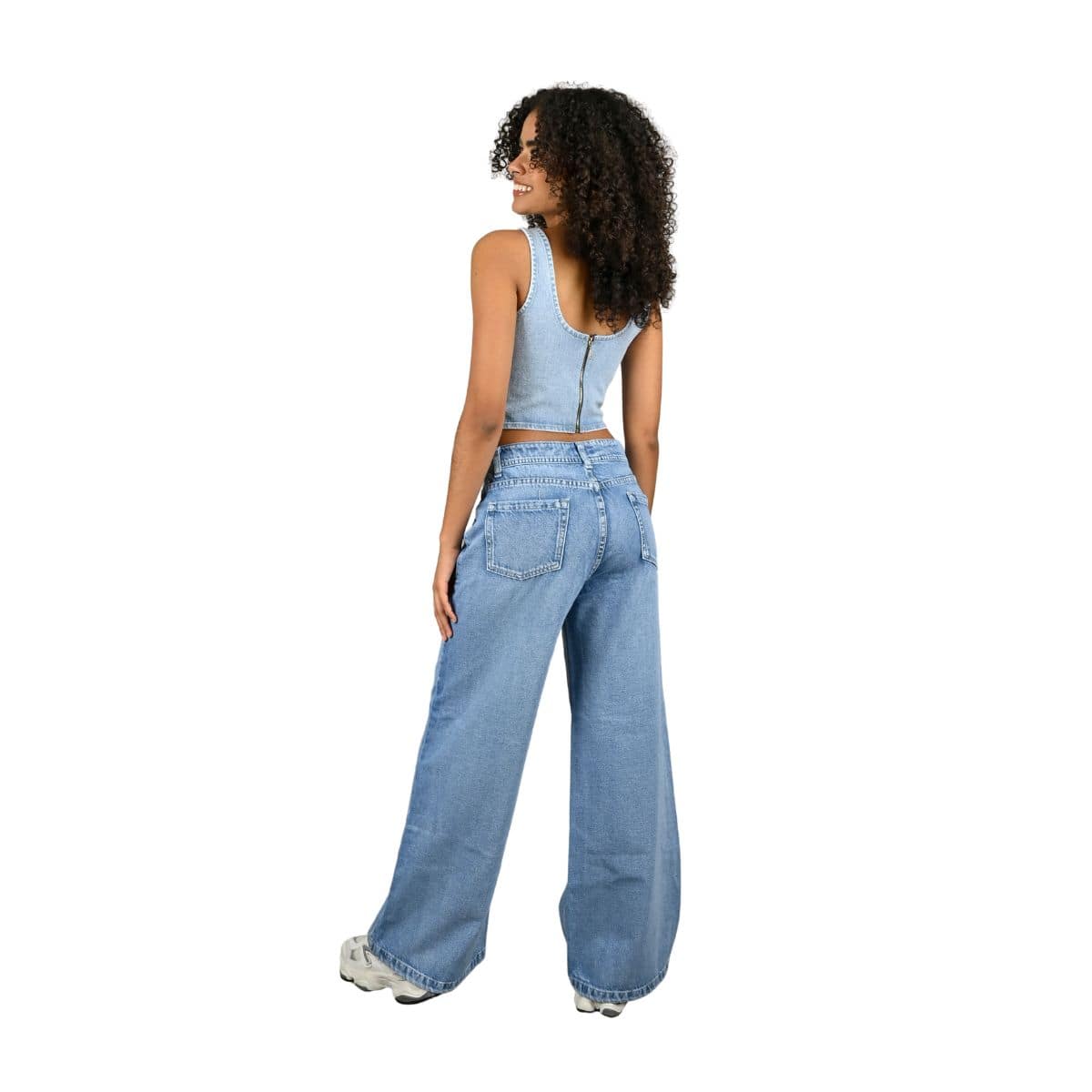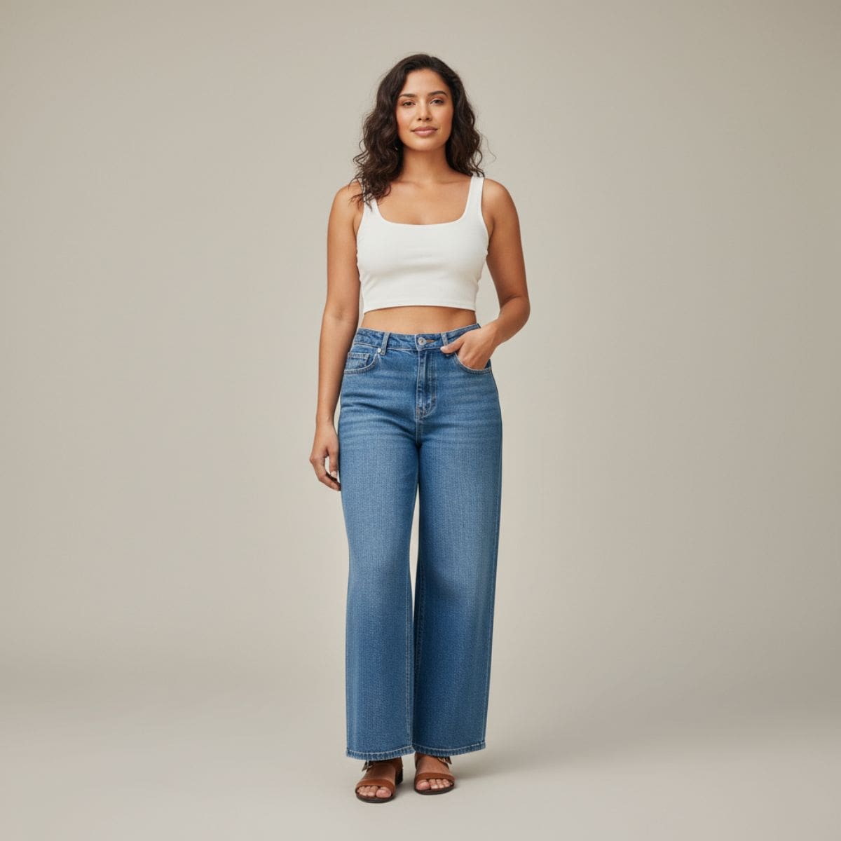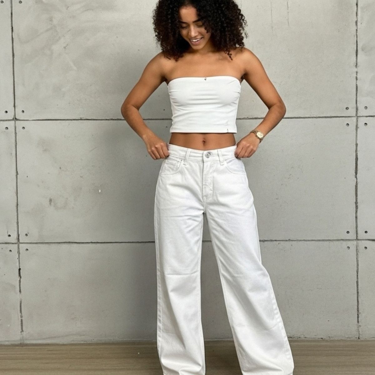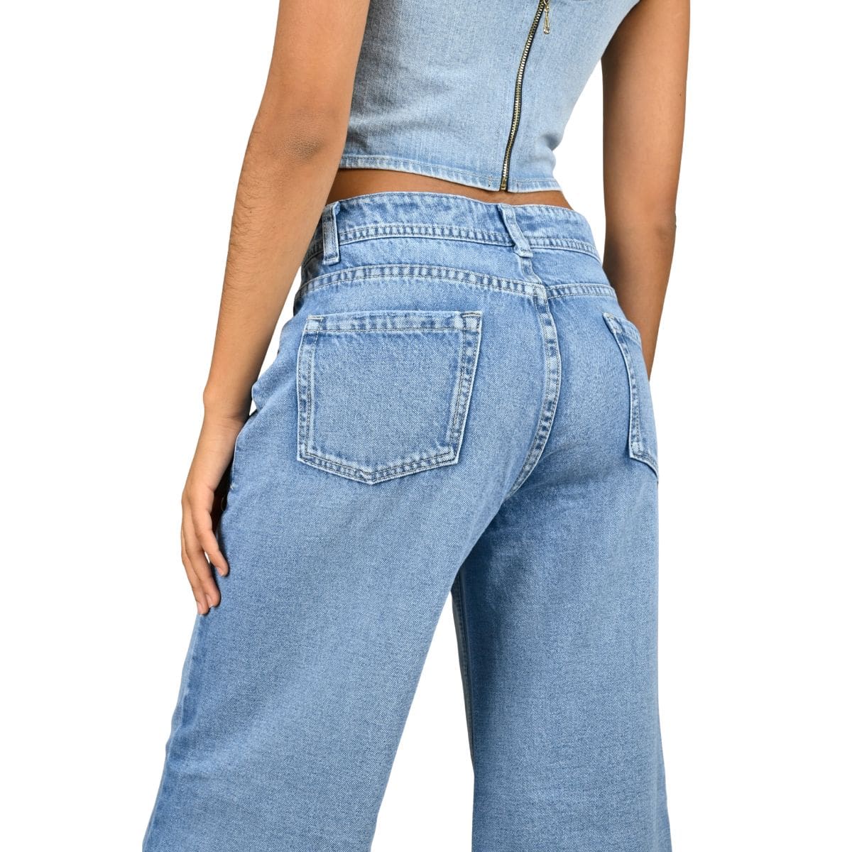 Pantalón palazo con corte ancho y cintura media, disponible en tonos modernos: marrón, perla, celeste, azul clásico y negro.